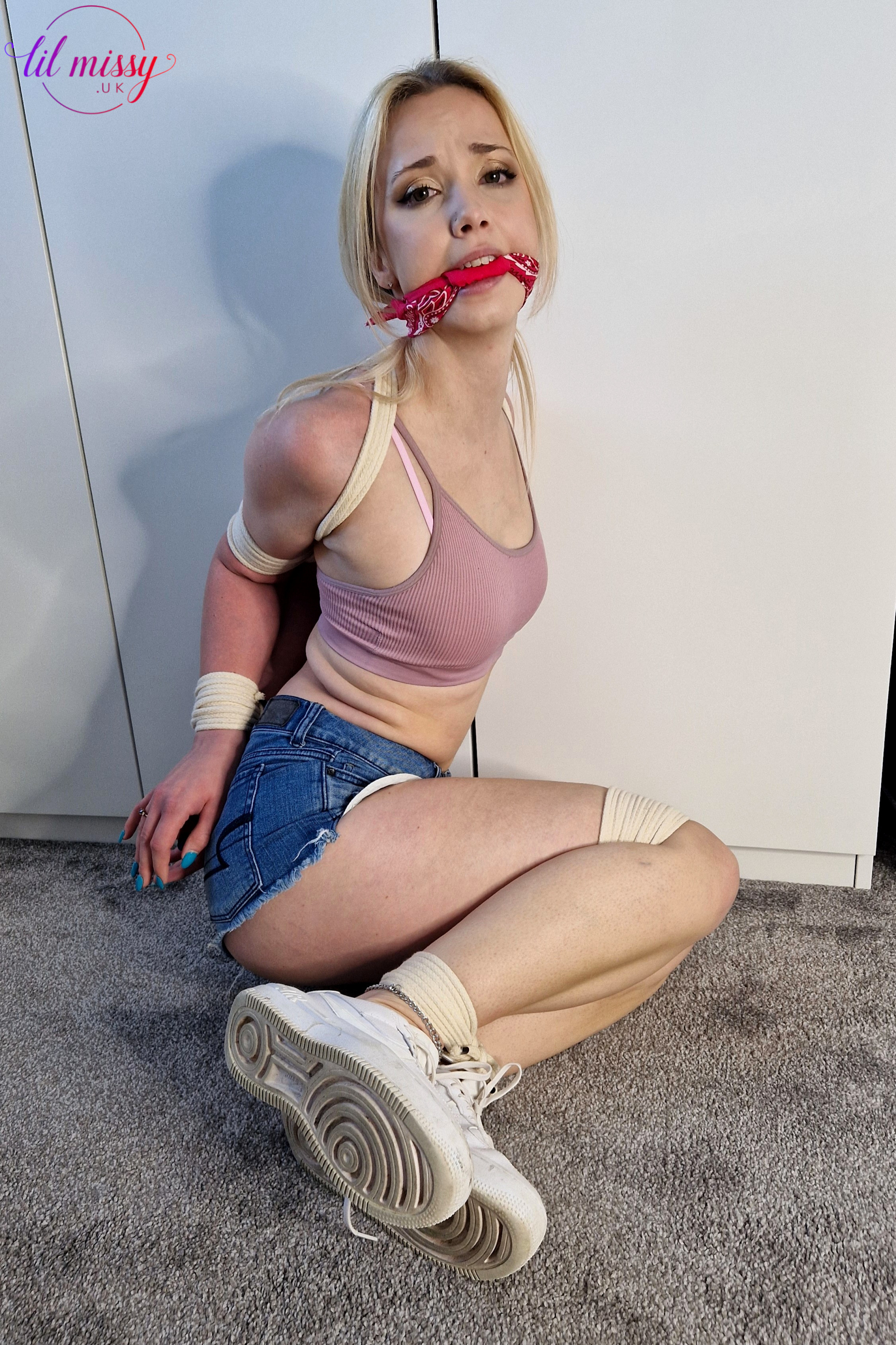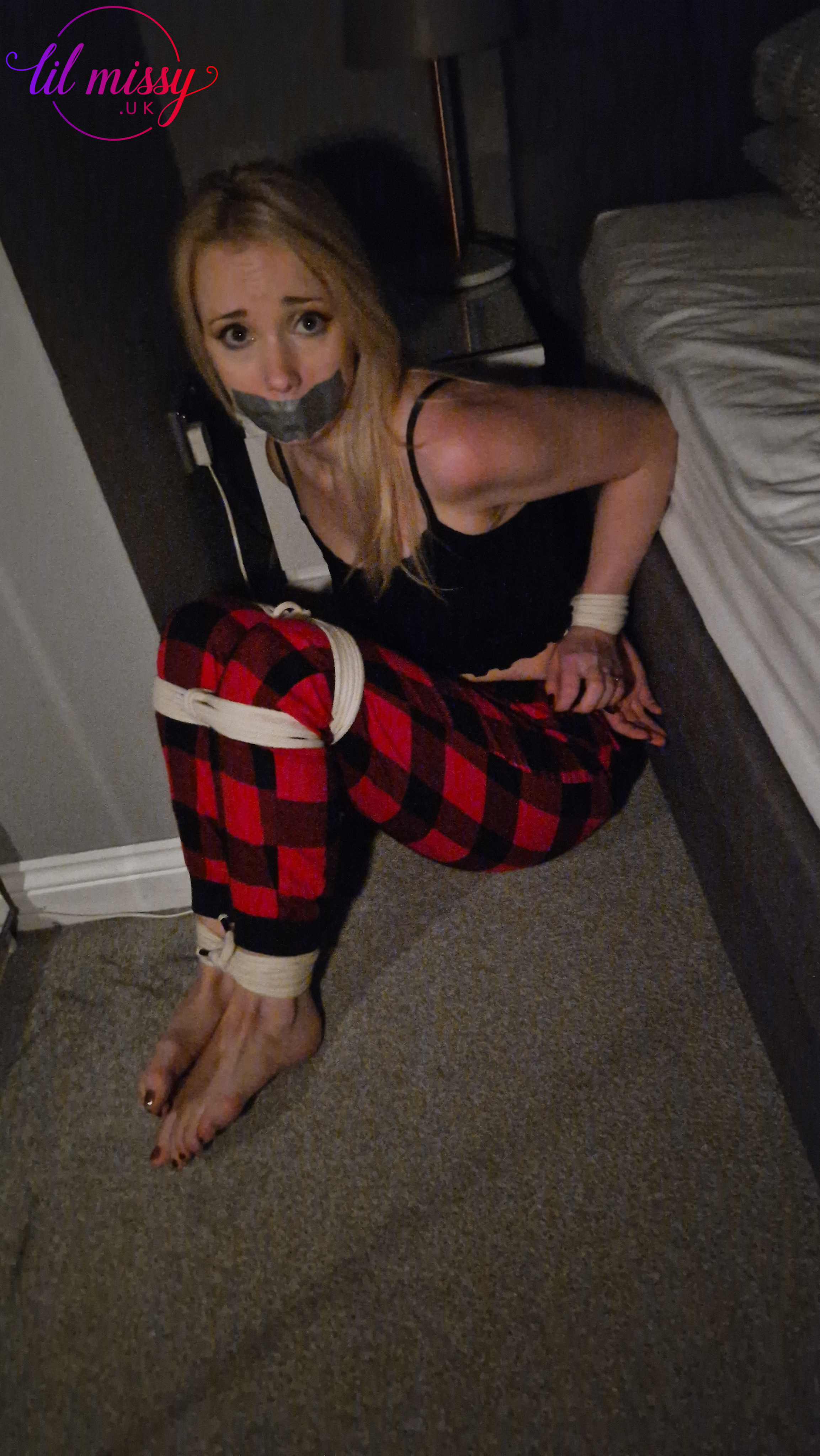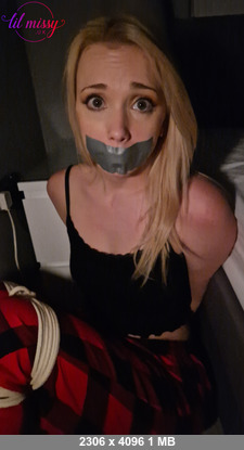 girlfriend gets tricked into being bound in pantyhose photo set