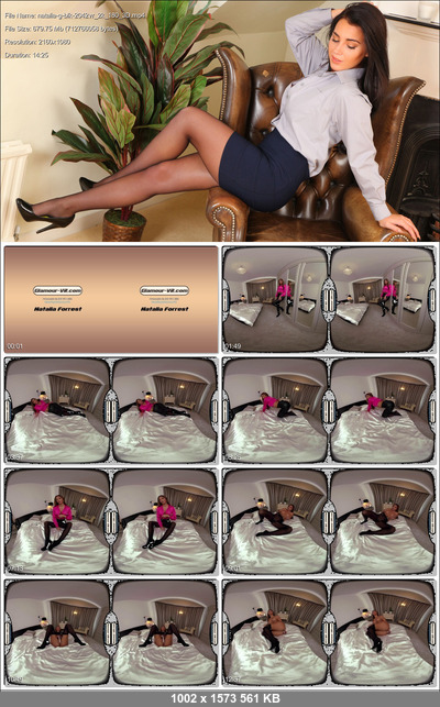 8K 60fps 14 minute JOI VR Video featuring sexy secretary Natalia Forrest wearing an eye catching outfit comprising; pink long sleeved silk/satin midriff cropped blouse/smart/casual top (sans bra), black leather skirt with back zipper, black Wolford semi-opaque glossy legwear with gusset (sans briefs underneath), and black calf-length boots that are subsequently removed as one part of a truly memorable tease that unfolds in stages where you are treated to watching her removing her skirt, presenting her nylon encased feet, unbuttoning her blouse to expose her beautiful perky breasts and hard erect nipples, pulling down her legwear to expose her beautiful clean shaven/smooth tight pussy from myriad of angles front & back before finally reaching for her handy pocket vibrator and pleasuring herself with it, whilst all the time encouraging you to participate in jerking off your cock until you are both ready to simultaneously orgasm and explode your respective cum loads in unison and climatic harmony at the same time!